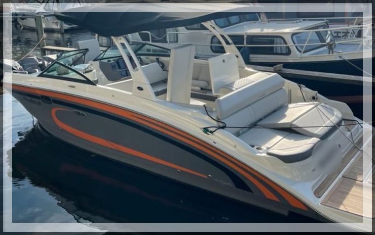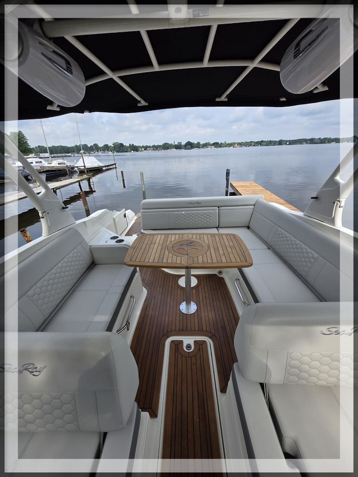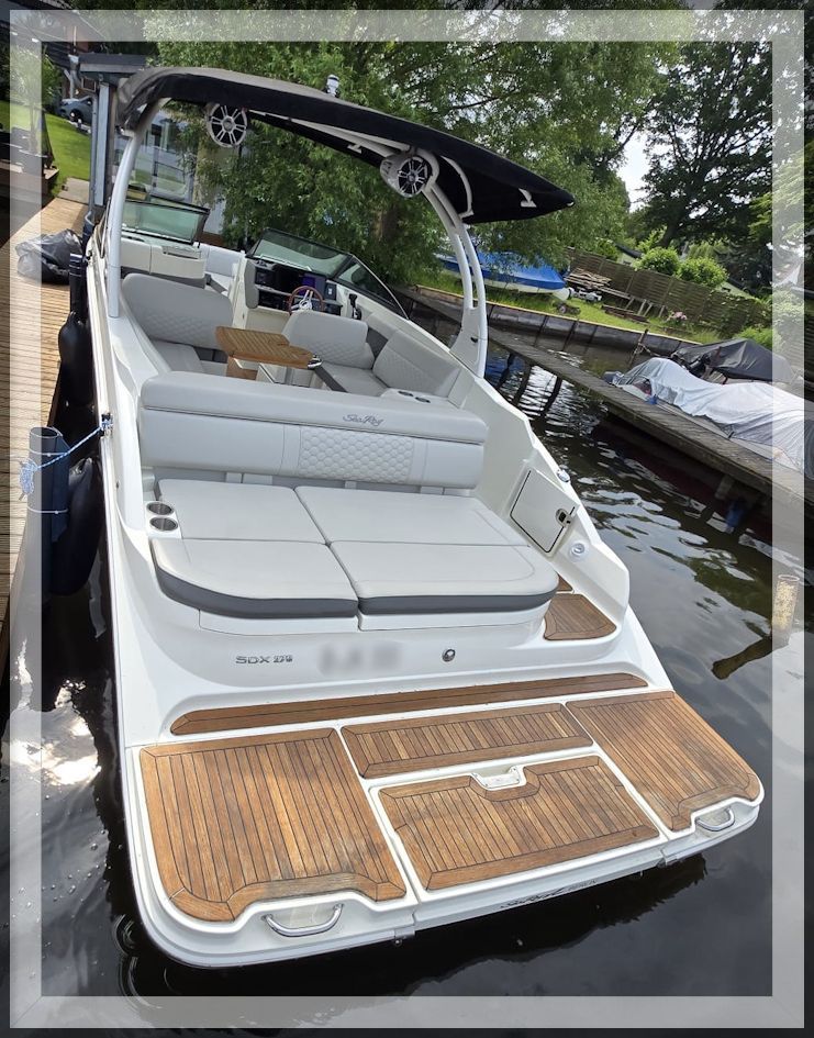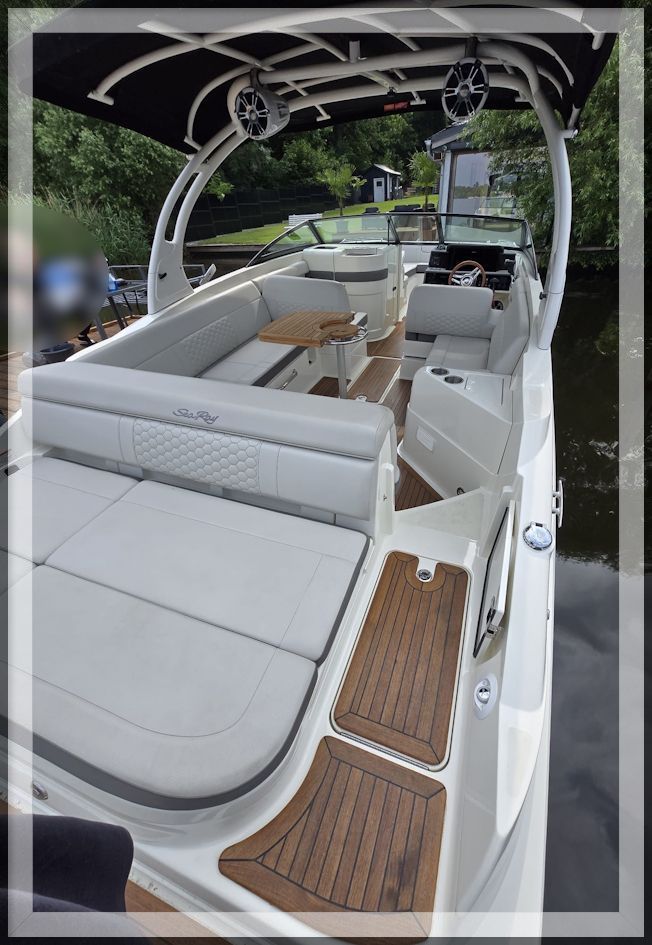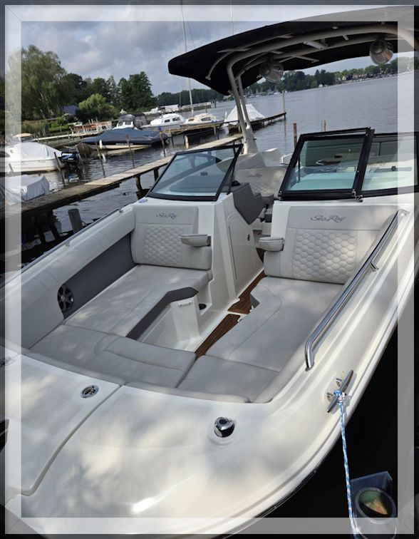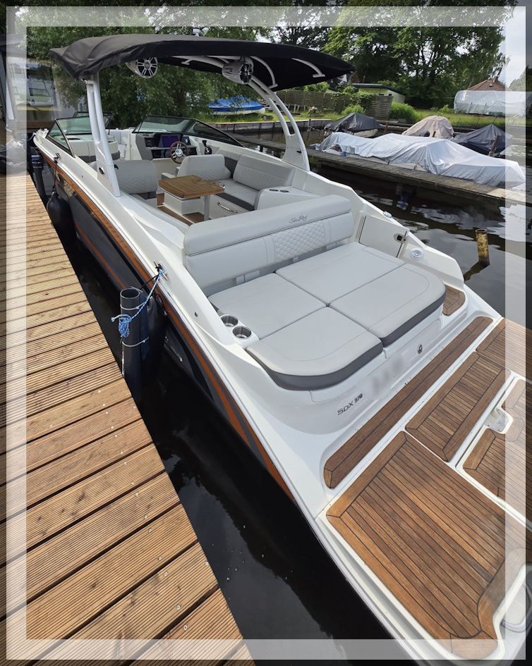 Sea Ray SDX, Baujahr 2020, EW 2021 - Material: GFK, Tankinhalt: 246 l. - Länge: 8,28m – Breite: 2,55m – Tiefgang: 0,96m